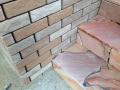 ステップは、クレモナストーン乱形石貼り(ユニソン)でオシャレに。