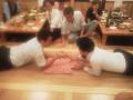 今日は工事課の 毎日美味しく頂いてます。 昨日、月一回熊本店と福岡の天神店社員全員でS会議がありまして、 今期より、会議の後で親睦を深める為 ワイワイ懇親会が行われるようになりまして、 昨日が、記念すべき一回目が行われました。 楽しく、美味しい お酒がいただけました。 その状況の写真です。 何か、イベントを設けて、楽しい一時です(大人の腕相撲大会) 負けてトボトボ?