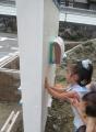 次は、思い出に門柱の裏側に手形をニコニコ(女の子)パー