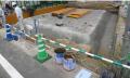 コレはアパートの道路側の縁石の設置中。
