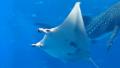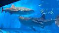 沖縄とはいえ11月下旬。薄い長袖くらいはいるでしょ?と思っていたら、機内アナウンスで『福岡と那覇の気温差は17℃ですので体調管理に気をつけて・・・』と言われ・・・ 着いた途端みんな半袖、しかもテレビから真夏日との情報。 空港で既にぐったり、汗だくの状態でしたがレンタカー屋で嬉しいことがありました。 借りる予定だったのはカローラだったのですが、『プリウスが空いてますので無料でランクアップさせて頂きます。』とのこと。 クーラーの風量MAXで快適に、でも初日は一気に北へ上るので飛ばして 着いた先は『沖縄美ら海水族館』です 10/31までは海で泳げるので海水浴客が、11/1からは修学旅行生が増えるそうで、水族館も3日目に行った国際通りも修学旅行生が多かったです。