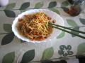 で、本日のお昼は、奥様からの要望でお昼ご飯作ってみました。 ニンジン・玉ねぎ・ピーマンを洗って皮取って まな板の上でそれぞれトントントン 豚肉を炒めた上に切り刻んだ野菜を入れ ジュ〜 玉ねぎがきつね色になって、ニンジンがやわらかぁ〜くなったところで 塩コショウ&広島定番のオタフクソースを入れて そばを投入〜 そばと具が絡まって、火が完全に通ったところで さらにオタフクソースを投入〜 4人前でそば5玉 オマタセェ〜『焼きそば』の出来上がりぃ〜 いっただきまぁ〜す 以前、俺が作ったチャーハン子供たちに『まずいぃっ〜 追伸:我が家の玄関周辺に住まいを持つ、スズメの『ピーちゃん』は最近、週2回ぐらいしか見あたりません。 素敵なパートナー見つけたんかなぁ??? ではまた来週〜 |