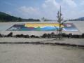 こんばんは!園長の東 (ひがし)です。 昨日朝早くから、向原町にシバザクラのマット27u分を配達してきました。市山くんが春から手配して、注文生産してもらったたシバザクラです。ピンク・紫・白の3色で、尾原親水公園の堤を飾るアイテムとしてご購入していただきました。向原町坂下地域振興会の皆さんが、朝の8時から集まって植栽されました。ジャ〜ン 来年の春がとっても楽しみですね。 ちなみに、バーク堆肥を忘れてしまいご迷惑おかけしました。 この場を借りてお詫び申し上げます。そして、少しだけ公園のご紹介を・・・・堤の土手にとてもカラフルな抽象画が描かれています。シバザクラはこの堤の池側の土手に植栽されています。 池では、少年2人が釣りを楽しんでいました。のどかな秋の1日でした。 それでは、また来週
