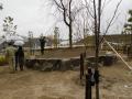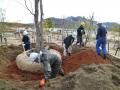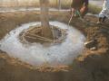 植込みの穴は、根鉢の4倍ぐらいの大きさで堀りその中へ芸北町の山から掘出し搬入した赤土を根の周りに入れ植込みました。