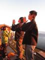 山小屋のスタッフさんとツアーのみんなでご来光を拝み