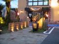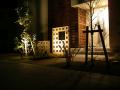 穴あきブロックは、南国っぽい雰囲気を作り出すのに重宝します。 レストランエントランスでの使用例(レンガブロック) 穴あきブロックは、夜間照明にも効果的です。