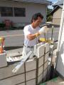 こんにちは!!サンパティオの岡です。 昨夜、自転車で買い物へ行く途中 蛍光色のウェアーでジョギングをしている人が、、、 目立つなぁ〜と見ていたら なんと当社の専務。 暗闇のなか、かなりの存在感でした。。。 そしてかなりのスピード☆ アスリートですね!! 先日からご着工しました江南市・A様邸。 門柱ブロックを加工するスタッフ・丹羽 それを積んでいくスタッフ・前田 (今日はちょっとカメラを意識してました^^) もうすぐ門柱が完成します!!