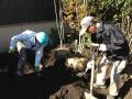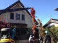 ユニック車で植木をおろす作業です