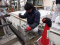 こんにちは、町川です。 新年明けまして、寒いですが天気も良く現場も順調です。 春日井・A様邸 お庭の工事中です。 親方甲斐の指導の下、高島がブロック積みの修行 ですが速、親方の甲斐に手直しされてました ブロック一丁きれいに積むのも結構大変な作業ですね まだまだ冷え込みますが、引き続きよろしくお願いします。