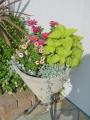 こんばんはっ 本店山下です 梅雨ですね…じめじめしてますね…こんな日は展示場に ナ○クジ君が登場してしまいますはっきり言って彼らは苦手です こんな日は こんな日は…晴れの日の展示場の写真をアップです サンパティオ店エルマージュ門扉エリアです 5月末くらいに植えた花達が成長してかなり賑やかになっております これ結構お気に入りです コリウスの成長がかなり早いので割とこまめにカットしています 展示場中の方にまわりました 分かりにくいですが、背の高いキバナセンニチコウがちょこんとでているのが気に入ってます そしてそのむこうには ディーズシェッド カンナ フラワーハンガーにかかっているミリオンベル 相性バッチリです この写真で梅雨がうっとうしく感じられる方々の気持ちを少しでも晴れやかにできたら嬉しいですね