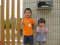 いつもお世話になっております。 今日は天候が良ければ土間コンクリート工事を予定していたのですが、あいにく曇り時々雨の予報でしたので予定変更で植栽の工事となりました 今日の岩尾君は親方の渡部に植木の植え方、縄の結び方などを習っていました。 研修もあと1週間。頑張ってますよ〜 と、そこへA様のお子さん2人が… お兄ちゃんの元彦君(小学1年生)と弟の真明君(2才)です お兄ちゃんは初めての夏休みの宿題がたくさんで大変らしいです 元彦君、宿題なんか早く終わらせて遊びに行こう〜 頑張ってね〜