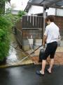 おはようございます、本店の町川です 昨日の夕方のことですが。 ちょっと時間があいたので展示場の掃除を 高圧洗浄機を使い日当たりの悪く 少しコケの生えたレンガを洗います 雨等で濡れてると、コケで結構滑って危ないんですよね 見てくださいこの色の違いを 高圧洗浄機を使うことにより、このとおりキレイになります これは現場でも非常に活用性のあるものですよ お客様も一家に一台いかがですかね びっくりするくらいキレイになるので気持ちいいですよ 展示場は常にキレイにしてますから、時間があったら遊びに来てください
