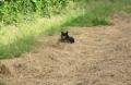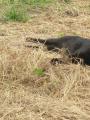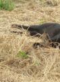 先日の秋晴れの日の事。 ポストに郵便物を投函しに行くと、側の畑で黒い塊が・・・ よ〜く見て見ると、猫が秋の爽やかな日差しを受けながら、 フカフカの枯れ草の上で、まったりとお昼寝してるではあ〜りませんか。 まぁ〜、それはそれは気持ち良さそうで・・・ (寝息が聞こえそうなほど気持ち良さそう〜) ・・・・・「あ〜っっ、私も今だけ猫になりたいっ!」・・・・・ あまりに気持ち良さそうなので、カメラで撮っていたら、 「見るなよっ!」・・・と言わんばかりに睨まれた。 これはこれは失敬失敬っ! お邪魔様でした。 T