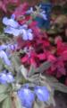 セージのお花が咲いています。 名前はSalvia azurea 【サルビア アズレア】 別名、スカイブルーセージ ブルーセージ プレーリーセージ などと呼ばれています。 英語で "azure" は,「空色(の)」という意味だそうですが、 その名の通り、明るく透き通ったブルーのお花です。 花期/9〜11月 草丈40〜150cmと大型のお花です。 秋になって紅葉した葉っぱや暖色系の花色が多い中、 このスカイブルーのお花は少し季節はずれに見えるかも知れませんが、 青紫系のお花が好きな私にとっては関係無しっ! 澄み切った秋空に溶け込んで、最高に美しく感じます。 でも、今日の夕方から雨になるとか・・・ 綺麗なお花が散ってしまわなきゃ良いけど。。。 もう少し、爽やかブルーのお花を楽しませてぇ〜! T