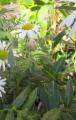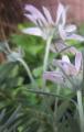 先日園芸店で一目惚れで買ってきたお花のご紹介です。 ラベルには「那賀川菊 桃色つぼみ」とあって、 なるほど、お花は見た目真っ白なのにつぼみと花弁の裏は桃色をしています。 この楚々としたお姿、綺麗ですね。 この菊の花は、徳島県の那賀川とその支流である日和佐川にのみ生育する固有種で、 日本産のキク属では分布域がもっとも狭く、今は絶滅危惧U類の菊だそうです。 生育地はキク属には珍しい渓流地で、大雨が降ると水につかるような場所だとか。 このような渓流沿いの植物は、水の抵抗を弱くするため葉が細くなっているのが特徴らしく、 那珂川菊は枝分かれが多く葉が細く葉の表面に短毛が生え、 葉の先は3列してくさび形をしています(写真左側) 普通の菊の葉に比べると、やはり細いですね。 開花時期は10月下旬〜12月頃で高さ40〜60aぐらいまで育つそうです。 一見、菊というよりも白いマーガレットのようで、 洋風ガーデンでも違和感を感じない花姿です。 野菊の繊細で優雅な花姿にノックアウトされた私です。 T