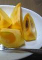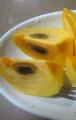京都の洛西の大枝は、柿の産地です。 大枝の柿は、大ぶりで甘みが強いのが特徴です。 京都市内から国道9号線を亀岡方面へ走ると、 京都縦貫道の手前に「沓掛」という地名の場所があります。 その沓掛から続く田舎道は通称「柿街道」と言われ、柿の季節になると賑わいを見せます。 今は、道路沿いのお店に所狭しとして、並べて売っています。 春は、たけのこ、秋は柿です。 そこで、今年も買って参りました。 早速いただいてみると、しまった果肉を口に頬張った瞬間、 甘い果汁があふれ出て、なんと美味しいんでしょう〜 ちなみに、柿の栄養と効果は、 柿の成分で特筆できるのは、何といってもビタミンC! 酸っぱいイメージのビタミンCとはちょっと意外かもしれませんが、 甘柿に含まれているビタミンCはレモンやイチゴに決して負けてはいないのです。 ほかにも、ビタミンK、B1、B2、カロチン、タンニン(渋味の原因)、 ミネラルなどを多く含んでいるため、 「柿が赤くなれば、医者が青くなる」という言葉があるほど、柿の栄養価は高いのです。 また、「二日酔いには柿」といわれている訳は、 ビタミンCとタンニンが血液中のアルコール分を外へ排出してくれるからで、 豊富なカリウムの利尿作用のおかげともいわれています。 やっぱり、旬のものは美味しさが違いますね。 ついつい、手が伸びてしまいまいそうですが、 いくら栄養、効果が優れていても食べすぎは禁物・・・です・・・ね(ははっ) T