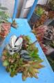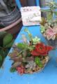 葉挿しや挿し木で増えた子達だけで多肉の寄せ植えを作りました。 でも、主役級の多肉がいないので、脇役級の多肉さんばかり・・・。 さすがに色味も形のバリエーションも少なく、地味ですね(汗)。 それでも集めればちょっとは賑やかにみえるかしらん? でも、これから少しずつ紅葉する多肉もあるので、 今より少しは華やかになるかな? 寄せ植え作って一仕事した気分になってるけど、 実はまだ多肉の植え替えが出来ておりません(汗) 早くしないと冬が来ちゃうぅぅ!(焦)・・・・・ T
