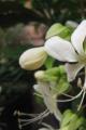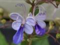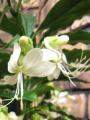 そのお花のお名前は【クラリンドウ】 楚々とした白い花が風に揺れてとても可憐で優雅なお花です。 ◆クマツヅラ科・クレロデンドルム属 ◆原生地 インド・ヒマラヤ・東南アジア ◆別名 クラリンドウ(タガヤサン) ◆花期 10〜12月 ◆ツル性常緑低木・室内にて越冬 枝先より伸びたツルに蝶が舞っているかのような、 たくさんの白い花を咲かせるつる性の品種です。 花序の長さは20〜35pにもなるとか・・・、 ガクは時間が経つと赤くなり、そのコントラスも又綺麗です。 又、甘い香りがあるのも魅力的♪ クレロデンドルム・ウガンデンセという花と同じ科、属だけあって 長く伸びたおしべの花姿は良く似ています。 環境が良ければ樹高2〜3mにもなるそうですが、 そんな大きなクラリンドウ、一度眺めて見たいですね。 きっと華やかで、優雅で綺麗でしょうね〜。 可愛いけれど、優雅。 清楚なようで、なんだか妖艶。 シックなようで、とってもゴージャス・・・・・そんな魅力的なお花です。 T