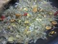 今日は食べ物ネタです。 いえ、正しくは今日も食べ物ネタです((((((((((ノ∀`)・゚・。 アヒャヒャヒャヒャ 先日、子カブ(葉付き)がお安く手に入ったので、 栄養満点、かつ簡単に出来る手抜きスパゲティーでございます。 我が家では人気メニューの1つになっています(手抜き料理なのにね(* >ω<)=3 プー) 材料は以下です。 ・スパゲティー ・カブの葉 ・ちりめんじゃこ ・鷹の爪 ・オリーブオイル ・ニンニク 作り方 ・大きめの鍋に塩を入れ、スパゲティーを茹でます。 ・オリーブオイルに鷹の爪を入れ、細かく切ったニンニクを炒めます。 (ニンニクが焦げないようにじっくりとニンニクの香りを煮だすのがポイント) ミジン切り、粗いですな。。。 ・次にちりめんじゃこを入れて炒めます(良く炒めると生臭さが無くなります) 大量ですな。。。 ・最後にカブの葉を入れ炒めます。 ・葉がしんなりしたら、スパゲティーと茹で汁を少々入れ、絡めたら出来あがり! 要はぺぺロンチーノにカブの葉とちりめんじゃこを入れただけなんです(* _ω_)...アヒョ 味付けは、スパゲティーを茹でたときの塩分と、ちりめんじゃこの塩分で十分です。 *私はニンニク多めでオリーブオイルは少しお値段高い良質のものを使います。 その方がオリーブオイル臭さが無く、素材の味が引き立つ気がします。 カブの葉の栄養効果 βカロテン、ビタミンB1、B2、ビタミンC、鉄分、カルシウムなどが豊富です。 特にビタミンCとカルシウムの含有量が多く、ビタミンCはトマトやオレンジの約3倍、 カルシウムは全ての野菜の中でトップクラスです。 骨粗鬆症の予防、イライラの解消、美肌効果、便秘・貧血・風邪の予防、 血行促進、抗ガン作用、生活習慣病予防など、多くの健康に役立つ効果を持っています。 ちりめんじゃこの栄養効果 たんぱく質、ビタミンD、カルシウム、鉄分が豊富。 その他にも不飽和脂肪酸(EPA・DHA)、核酸、ビタミンDが多く含まれているのが特徴です。 不飽和脂肪酸/EPA・DHAと言う物質で血液中の有害なコレステロ−ルを排除し、 動脈硬化を防ぎます。 核酸は老化を防ぎ、肌と髪のツヤを保ちます。 ビタミンD・カルシウムでストレスやイライラを解消し、 骨を丈夫にして骨粗しょう症を防ぎます。 お魚が嫌いなお子さんも、葉野菜が嫌いなご主人も、 そして、初老化し始めたご婦人たちにも、お勧めのメニューでございます(σ ゚Д゚)σゲッツ!! カブは栄養価の高いお野菜ですので、是非葉っぱも捨てずに頂きましょう。 あっ、カブの根の方もお気に入りのお漬物にして、しっかり頂きました(^^*) ホホホホ 簡単、美味しいスパゲティーのご紹介でした。 これって庭ブロじゃ無くね〜?・・・・・ヘ(゚∀゚ヘ)アヒャヒャヒャヒャヒャ T