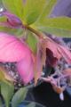 今朝の京都市内、こんな感じに雪が白く積もりました。 この冬、初めての雪化粧・・・午前中には溶けてなくなりましたが、 改めて寒さを感じた朝でした(ブルっ) 話変わって、クリスマスローズの花が咲きました。 名無しのクリスマスローズさんです。 2年前、花期も終わりヘロヘロになってワゴンセールで売られていたこの子。 やっとお花が咲いたので、 自分なりに管理しやすいように名前を付けようと思ったのですが、 今まで当社に無かったタイプなのです。 (花弁の中心部分から縁に向かって濃いスポットが広がってるでしょ?) オヨヨ?ってな事で1冊しか無いクリスマスローズの本で調べたけど、 こんな説明書きがされてたんです。 「お花の中央部から外側に向かって火花を散らしたように スポットが入るタイプを「フラッシュ」と呼び、 蜜腺(ネクタリ―)の付近にスポットが固まって入ったタイプを「アイ」と呼ぶ」・・・ 解読力の乏しい私・・・ 今一、意味が分らない・・・・・(汗) 火花を散らしたように?・・・そんな風に見えるような見えないような・・・ でも、中心部分に濃いスポットが集まってる感じだから「アイ」なのか??? この子は一体どっちなんだろ? それに加え、花弁の表と裏の色が違うのんとか加わって・・・ (後ろ姿です 花弁の表と裏の色が違うでしょ?) あんれぇ〜、この子の名前、一体何にすれば良いんだぁ〜? こんな時の頼みの綱、Yさんに聞いてみようU+203C・・・って事で・・・ もしもし、教えておくんなまし〜っU+203C Yさんが言うには・・・ 一重咲きなので・・・「シングル」 花弁の裏表の色が違うから・・・・・・「リバーシブル」 中央部に色が星型に入ってるのは・・・「フラッシュ」・・・ですね・・・とな。 う〜ん、さすがっ♪ 的確に観察してくれたわぁ〜♪ ・・・という事は、この子のお名前は、 「シングル・リバーシブル・フラッシュ」??? いやいや、さすがに名前が長すぎるやろ〜〜〜っU+203C?って事で、 「フラッシュ・SS・リバーシブル」としました。 (然程短くなってませんかね 汗) クリスマスローズの名前って、こんないい加減な自己流でエエんかな? まっ、とにかく忘れんうちに札にお名前書いとこっU+203C へへっ。 T