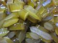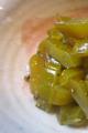 庭ブロのはずなのに今日も食ブロですU+203C 御勘弁〜 旬の美味しい海のお野菜と言えば・・・ ワカメ、ひじき、芽かぶ、カジメ、アオサ・・・・・ 冬の海のお野菜はどれもこれも美味しいものばかり・・・ だけど京都市内のスーパーにはそんな新鮮な海のお野菜達が並ぶ事も少なく、 ただただ、その旬の味を味わう事を諦めておりました。 しかし、やっとここ数年、こんなものを売ってるスーパーを発見。 2月から3月が旬の茎ワカメです。 (WEBより) *茎ワカメとは字の通りワカメの茎の部分で、その茎から外した部分(葉)がワカメです。 根元近くにあるのが芽かぶで、葉・茎・根(元)と全部美味しくいただく事が出来ます。 2月から店頭に並び出すのですが、今しかいただけない季節の食べ物ですから、 しっかり今のうちにいただきましょう〜って事で、 茎ワカメを使って簡単佃煮を作りました〜。 生の茎ワカメは潮の香りがしてそれだけで美味しそう〜♪ その茎ワカメを湯通しして、醤油、(みりん、砂糖、酒はほんの少し)で 煮詰めるだけの簡単佃煮。 最後に七味を振って出来あがりU+203C 私は歯ごたえがある方が好きなので、クタクタになるまで煮詰めず、 早めに火を止めて味を含ませています。 このコリコリした歯ごたえと潮の香りがたまりませんっU+203C 何杯でもご飯がいただけますU+203C この単純な味付けや調理だけでで十分美味しいのも旬ならでは・・・ 自然に感謝しながら美味しくいただきました〜U+203C お陰様で私Tは薄着になる季節を前に、 順調に肉襦袢の厚みを増しておりますとなっU+203C はははっ(汗) T