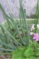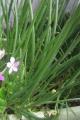 プランターに植えたネギに混ざって、サクラ草のお花が咲いています。