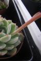 多肉棚ではおっちょこちょいな多肉さんが、 一足早くお花を咲かせています。 この多肉のお名前は「花月夜」。 ロゼット状に巻かれた葉は、まるでバラの様でキレイでしょう? 葉先の小さな爪もほんのり赤くて可愛い〜U+203C 収集癖とまでは行かないけれど、 小さな多肉棚は只今満員御礼状態(汗) 春の植え替えもしなきゃ〜・・・ 庭仕事って意外と多いな・・・・・(汗) T
