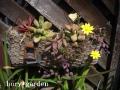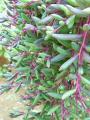 ルビーネックレス(紫月)が小さな花を咲かせています。 ルビーネックレスはキク科の匍匐性多肉さん。 葉の成長の盛んな時は緑色をしていますが、 植物内の水分量、気温によって葉の部分が赤褐色に変化するんです。 茎は鮮やかな紫色で印象的。 挿し木で簡単に増やせますよ。 寒さには強い方だと思います。私の所では外で冬越ししました。 そして、所狭しと増えて大きくなった子持ちレンゲ。 子持ちレンゲはベンケイソウ科の多肉さん。 1つ1つがお花のような形をした葉姿でかわいいでしょ。 モッサモッサと大きくなってブリキの鉢が一杯です。 親株の下やランナーを出して子株を増やします。 また、その姿が何とも可愛い〜。 子株で溢れる前に植え替えしてあげないと。。。 寒い冬の間、ほったらかしにしてたのに、 こんな素敵な姿を見せてくれるなんて・・・(ウルウル) 春の植物の芽吹きは沢山のパワーをもらえる気がします。 今度は私が頑張って植え替えしますからね〜 そして、おまけ?の写真。 多肉の宝石箱やぁ〜!(古) 笑 子株が出てくれるのが待ち遠しい〜 T