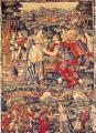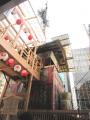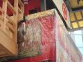 さてさて、祇園祭の続きです。 長刀鉾には残念ながら上がれず、それじゃ〜残念と振り返ると、 烏丸通りを挟んで「函谷鉾」が見えています。 またまたそれは大きく美しい姿・・・そして、その奥にはまたまた大きな「月鉾」。 「用事は?」と自分に問いながら勝手に進む足が止められず・・・ 「これ見たら、これだけ見たら・・・」と溜まってる用事をそっちのけぇ〜。。。 「函谷鉾」「月鉾」は残念ながら雨に備えて染織品はビニールがかけられていたので 見にくかったのですが、近くで見ると迫力満点U+203C 他人から見ると、「たるんだ首のストレッチでもしてるのか?」と思われるほど 首を伸ばしてジロジロ・・・沢山の人がいたらこうは行かないけどね〜 へへっ。 「函谷鉾」のビニールの下には今尾景年筆の「鶏鴉図」をはじめ、 前懸は旧約聖書創世紀の説話「イサクに水を供するリベカ」を題材にした 十六世紀の毛織物で重要文化財のタペストリーなど、素晴らしい織物が飾られていました。 WEBよりお借りしました。 その迫力と美しさに圧倒されながらしばし時を忘れ眺めていました。 さぁ〜、これでさすがに用事を済ませなくては・・・と足を進めながら、 山鉾のミニチュアが並んでてとてもステキ〜 夜店は準備中〜 う〜、何かたべてぇ〜! またまた気になるお店をパチリ・・・ 通りをパチリ・・・・・ おばちゃんカメラマンは行くのでした〜(いつの間にカメラマン?) あれっ、あそこにも山鉾が・・・・ 用事は??? 引き続きは後編にて T
