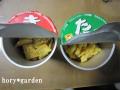 寒〜い日が続いている京都です。 昨日も雨が降ったり、あられが降ったりと寒い寒い1日でした〜。 でも、そんな中元気に沢山の花芽を付けて咲いてるのがクリスマスローズ。 シングルのグリーンちゃんです。 去年、始めてちゃんとした?植え替えと冬場のメンテをしたからびっくりしているのか、 気温的な事か分らないけど、グリーンの花色と言うにはちょっと色が足りないような・・ でも、花芽は沢山上がってきてるのでOKって事で・・・ははっ。 突然話変わって、 こんな寒い時はあったかいおうどんやお蕎麦を食べると体が温まって良いですよね。 ・・・という事で、はいっU+203C コレッU+203C 赤いきつねと緑のたぬき。 「えっ!インスタントのおうどんとお蕎麦?」って思ったでしょう? 実は違うんです、 うどんやお蕎麦じゃなくてスナック菓子なんです。 ・・・・・(じゃ、前の温かいうどんとお蕎麦の話のくだりいらんよね)・・・・ そういう事になるねぇ〜 だはははは〜っ(汗)。 中はこんな感じで、コーンスナック菓子。 おうどんの味は・・・???・・・ですが、スナック菓子ですから・・・ね・・・・。 多くを望まず、このお菓子の存在を楽しむ気分でお試しください。 くれぐれも熱いお湯を注いで食べないで下さいまし〜っU+203C 今日は珍しく日曜日アップのTでした。