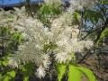 今、花盛りのこの木、何か分ります? 真っ白の綿菓子が一杯付いてるかのような姿のこの木は【アオダモ】の木。 美味しそう〜!(違う違うっ!) 枝いっぱいのお花が青空に映えています。 アオダモの木は強靭なため、野球バットの材料として使われている事で有名ですが、 テニスやバトミントンのラケット素材としても使われています。 ヤマボウシやシャラノキ、ハナミズキ等の花に比重をおいた樹木も良いのですが、 アオダモは花姿だけでなく、年間通して樹形の美しさを楽しめる樹木として、 魅力あふれる樹木の1つです。 涼しげな葉、白みがかった素晴らしい木肌、秋の紅葉と 沢山の魅力が詰まったアオダモは雑木風のお庭にもピッタリです。 私も是非植えたい樹木の1つなのですが、 なんせ、お庭が無い・・・・・・(話にならんね・・・ははっ)。 これからお庭作りをお考えの方、 Tお勧めの【アオダモ】是非、シンブルツリーの1つとしてお考え下さいまし〜。 T