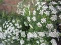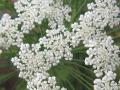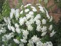 【ホワイト・レース・フラワー】の花が満開です。 和名はドクゼリモドキ(毒芹擬き) 原産地は地中海沿岸地方。 白い小さな花が2cmぐらいの花序を作りそれが放射状に線香花火のように 15cmぐらいの大きさの花序を作ります。 花の咲き方がレースのように見えるので、ホワイトレースフラワーと 呼ばれています。葉っぱはセリ、お花はニンジンの花にによく似ており、 草丈が1m以上ととても大きくなります。 以前、ブログにもアップさせていただいたオルラヤと、 このホワイトレースフラワーでホワイトガーデンもどきを作ろうと、 昨年の種まきから企み、成長を見守っていたのですが、 オルレアに遅れる事2週間あまり・・・・・ 最高の時をカメラで撮りたい・・・とタイミングを図っていたら、 オルラヤの盛りは過ぎるし、当のレースフラワーは雨でグッタリと倒れ、無残なお姿に。。。 小さな鉢植え(9号鉢に2株)にもかかわらず、 私の背丈ほど高くなったお花は雨を含んで、横倒し〜っU+203C。 (早めに支柱を立てましょう) 私の企みは残念ながら失敗に終わってしまいました(涙)。 ホワイトガーデンもどきのお姿を是非皆さんにお見せしたかったのですが、 そんな事で、とてもお見せできない状況となってしまいました〜。 がっ、お花は元気に咲いておりますので見てやっておくんなまし〜U+203C 白いレースの様なお花は繊細で可愛い〜 花言葉は【可憐な心】ですって・・・ あらやだぁ〜・・・(ぽっ)・・・・・・って、違うかっU+203C あはっ。 ホワイトガーデンもどき、又、来年リベンジしたいと思います。 来年は早めの支柱と、種蒔きのタイミング調整・・・だね はははっ。 余談ですが、昨日悲しい出来事が・・・。 以前、ブログにもアップしたツバメの巣から落ちたのか、 もしくはカラス避けの効果が無かったのか・・・卵が1個下に落ちて割れていました。 巣の中に卵が何個あるのかはわからないのですが、母鳥はまだ巣に戻って、 卵を温めているようです・・・・・。 中を確認したいけれど、見れないし・・・心配。 どうか、一羽でも多く孵化することが出来ますように。。。。 T