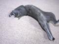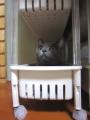 久々登場〜 みぃ でございます。 長らくブログに登場しておりませんでしたが、 それは、飼い主のお母ちゃんのただ単なる無精でございます。 その間もわたくし みぃは変わらぬ食欲を持続し、 久々登場にも関わらず、ぽってりとした体型は維持しております(笑)。 「それにしても今年の夏もたぎるような暑さよね〜 暑じぃ〜!」 (ブサっ) 「暑過ぎて身も細るわ〜。。。。。」 ・・・・・・・・・・ 「・・・・・って、気もない事言ってごめんにゃさい。 でもね、たまにはひねりのポーズなんかやって“くびれ”目指したりしてんのよ〜 ねっ、ほら、ヨッコラショ・・・・っと」。 (汗) 「ところで、私が最近ハマってる事教えちゃおうかな・・・ それはね、お母ちゃんが買ってくれた3段ベットで寝る事〜。 ちょうど良い狭さだし、通気性もあるし、落ち着くのよね〜♪」 ・・・・・・・・んん?・・・・・・・ 「みぃちゃん、それ、お母ちゃんが押入れの収納用に買ったラックやで・・・」 (えっ!) 「えっ! ホンマ???ベットちゃうん?」 「あたたたたた、そりゃ〜失敬失敬っ! ついつい、収まりが良かったもんだから、 特注で頼んでくれたのかとばかり思ってたわぁ〜 へへっ(汗)」 (にゃはっ) 「・・・・まぁ〜ええけど、飽きたら返してや?」 「うんうん、わかった〜! 夏の間だけ貸しといてにゃ〜!」 T