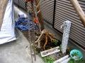 カイヅカシリーズの最終回、最終的にこんな感じで仕上がりました。このカイヅカは、何というのかな、サラッ、と仕上げるのが結構、難しいんですね。前にも話しましたが、刈り込んでしまうと、本当に醜くなってしまいます。2年か3年に一度はプロに頼み、中をスッキリ抜いてもらいましょう。そうすると、本当に良くなると思います。普段は、ご主人が、休みの日に刈込んで、たまには風通しをよくする・・いかがでしょうか?でも、ここのカイヅカは、フェンスにくっ付き過ぎて、ちょっと可哀相な感じ・・少しは良くなりましたかね?2枚目はついで?に依頼されたある樹木の伐根、立水栓のとなりの根っこがどうしても抜けないとのこと。そうですね、スコップで根気良くってノリではありませんね。チェーンブロックを設置し、早速作業開始、時間にすると3分くらいでした。このことをご主人に話すと、「あの苦労は何だったのだろう?」との弁、やはり道具は大事になります。