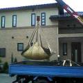 さて、その黒土を3トン車の荷台から吊り上げるシーン、この吊り上げるシート上のものは、何度も紹介させて頂いている「シートモッコ」と呼ばれるもの、2立米分の黒土を積載することが可能、使わない時は折り畳んで保管し、黒土だけではなく、多用途に使用が可能な優れものになります。 先日に紹介した更地の上に、黒土を降ろすシーン、クレーン車のすぐ脇に降ろすことが可能(間に障害物が無いので楽でした)だったので、殆んど目一杯に積み込んだものを搬入することが可能でした。今回、何故、基盤の地盤に直接、芝を張らないのか?理由はただ単に、基盤になる地盤が非常に粗悪?な為になります。そうですよね、やはりより良い成長を促すには基本となる土、特に黒は最高なのでしょうか? |