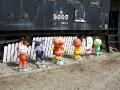 アンパンマンシリーズ、ファイナル編、メロンパンナちゃん設置終了後、ボルトの頭を切断するシーン、やはり、かわいい園児のことを考えると小さなことですが、こういうこともやっておいて損は無いと思います、残しておいても問題は無いのですが、美観も兼ねての作業となりました。さて、完成です、6人の揃い踏みとなりました。やはり、小さいお子様には必須?のこのシリーズ、私も良く、ビデオを見させられましたが、大人が見ていても面白い内容です、個人的にはバイキンマンが大好きですが、(うちの悪ガキも一緒です)皆様のお家はいかがでしょうか?よく、お客様のお宅にお伺いする時に、そちらのお子さんに、よく質問をしますが、集計してみると、バイキンマンが一番(ほんとかな?)みたいですよ(笑) |