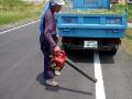 さて、シリーズ第3弾、雑草の草刈りシーンの模様の続きになります。」ある程度、草を刈り取り、その後に除草剤を散布致します。折角、草を刈っても、また生えてきてしまう・・少しでも草の生長を遅らせる為にも、薬剤は、必要不可欠になりますね。一番、手っ取り早いのは、雑草にそのまま吹きかけるのが一番ですが、枯れたものが残ってしまう・・やはり、草刈りは、必要な行為になります。まさに、これからが本番、今年は雨が多く、どうでしょうかね?草も例年に比べて多くなるのでしょうかね?2枚目は、どうしても、雑草を刈る際に細かい葉が飛び散ってしまいます。このままでは、折角刈っても、台無しになり兼ねないですね。結構、目立つんですよ、この細かいのが・・特に、雨が降ったあとなどは、本当に大変です。この、細かいものをエンジンブロアーで収集します。この作業が、とても大事、すっきり綺麗になりますね。 |
