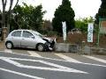 うちの前の植木畑に車が突っ込みました・・車はニッサンのマー?で、紅葉マークのご年配の方の運転だったとか・・幸い、大したことはありませんでした。実は、すぐ近くにある交差点が非常に危ない・・一番酷い時には、本当に2〜3日に一度?くらいの割合で、追突事故が発生していました。本当に危ない場所なんですが、未だに信号機の設置が行われておりません。早急の対応を願いたいところです。私も本当に危ない目に遭いました。すみません、脱線モードで・・いやー、失礼ですが、見事にブロック塀にはまっていますね、怪我が無かった分、こんなことも言えるんですが、本当に事故には、皆さん、気を付けましょうね。(2006年5月24日弊社HP掲載分) |