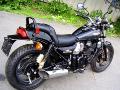 さて、今日は、手前味噌になりますが、私の愛車?の紹介になります。以前にも、ちょっとだけ紹介致しましたが、バイクの紹介になります。カワサキのエリミネーター400SEというものです。以前は、ヤマハのSRX600の紹介でしたが、今回、このバイクも所謂、一目惚れってやつでして・・いやー、最初に見たときに「かっこいい!」という印象でしたが、その時は、購入しようとは、思いませんでした。ヤマハのものとは違い、あまり流通台数も無く、見掛ける回数も・・仕事で山梨に向かう、雁坂トンネルを抜けたところのドライブイン(確か、道の駅だった様な・・)で、いい歳(失礼ですが)をした中年ライダーの方が、真っ黒い皮のライダースーツを着て乗っている姿を見てしまいました・・(これが病気の始まりだったとは?)もう、これは買うしかない!早速、インターネットのオークションや、バイク雑誌を漁る始末・・結局、程度の良い(平成元年登録の古いものです)ものを、軽トラックの助手席に息子を乗せ、新潟の業者さんのところまで購入しに出掛けました。私としたことが、今回は珍しく、あまり調べずに購入した為(年式に依り、若干のカラーリングに相違があるそうです)、ちょっとだけ失敗しましたが、バイク本体は、絶好調!走行距離も少なく、いいものを手に入れたと、今は満足しています。1枚目の写真の様に、私のものはタンクとホイルのカラーがグレー、将来は、2枚目の様に、両方、黒いものに変更を考えています。人に言わせれば、「どっちでも一緒じゃん?」って感じかもしれませんが、私にとっては、一大事です、決して、この辺は妥協したくないところかもしれません。ただ、未だに未登録、公道で乗れる日は、いつになるのでしょうかね? |