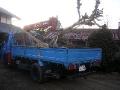 さて、去年の秋にお預かりしたサルスベリをうちの畑から吊り出す作業、田舎なので、まあ、畑を結構、所有している関係で、道路のすぐ脇の場所に一時保管、まだ、時間があまり経っていないので、すぐに吊り出せる状況でした。このサルスベリは、元々、敷地の一番角にあり、正直、大丈夫かな?(根の大きさなどを考えて)という所見でしたが、何とかうちの畑で冬を越しました。まあ、春先の仕事でしたので、時期的には問題は無い、と思います。無事にクレーン車に積み込んだシーン、支柱などの材料や道具を載せて、明日の朝、出発の準備と相成りました。