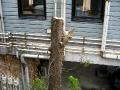 先日の続き、さて、こんな感じになりました。いつも思うのですが、正直、可哀相ですね、命があるものですから・・皆さんもよくご存知だと思いますが、樹木がどれだけ貢献していることか、我々に?二酸化炭素抑制など、数多くありますが、ここは心を鬼にしての作業となります。勿論、作業開始前にお酒とお塩を用いて「清め」は忘れてはいけませんね。ところで、話は変わりますが、皆さんは食事を召し上がるときに「いただきます」、やっていますか?野菜やお米、お肉など、自然の恵みなどに感謝し、毎回、美味しく頂けることに感謝をする・・昨今、「ありがとう」、「すみません」など、随分、忘れられている気がします、他の人との交流などを避けようとする風潮が多く感じられるこの頃、たった一言です、皆さんも是非、やってみて下さい、生活がちょっとだけ豊かになるかもしれませんよ。さて、2枚目はたまたま置いてあった道路の歩道などにある車止め?、人間2人でも重たいもの、これもクレーンで吊り上げ、持ち帰りとなりました。
