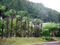 さて、今日はシリーズ11、お客様のところに下見に出掛けた際、途中で見掛けた「おーっ」、と思わせたお宅をお届けしたいと思います。こちらは棕櫚(シュロ)の木、最近は、あまり見掛けなくなりましたが、その昔は、公園などに植えられ、一般家庭でも流行ったそうです。うちの畑にも、祖父が好きだったせいか、流行だったせいか、随分と植えられていました。日本原産という説ですが、定かではありません。ヤシ科で、ちょっと南国を思わせるもの、幹を覆う繊維は、造園などで使用する棕櫚縄(シュロナワ)や、タワシなどの原料にもなります。そうですね、懐古主義ではありませんが、こういうものももう少し見直されてもいいのではないのかな?毎回、同じことを言う感じですが、本当にそう思いますね。実際に使う機会があれば、お客様にもお奨めするのですが・・・