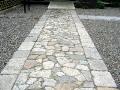 さて、あるお寺の続き、このアプローチ?は、所謂、延段と言われているもので、和風なお庭の通路?って感じのものです。皆様も、お寺などを訪れた際に、見かけたことがあると思います。延段(のべだん)には、「真・行・草」と三種類があり、この延段は、「草」のもの、今回、詳しい説明は避けますが、一番崩したものと理解して頂ければ、と思います。この乱れた石材、所謂、乱形石材になりますが、(最近は、洋風でイエローやピンクなどが流行りです)和風では、一番、取り扱われるのが(一番良いのがでしょうか?個人的にはの話ですが)京都丹波地方産(兵庫県篠山市なども同じくになります)の丹波石、赤褐色のもので、苔の付きなども良いそう、ここのところ暫く、採掘が減少気味だったそうですが、また、復活の予感が・・そうですね、こういう良い材料は、見直されてもいいのでは?と思う昨今です。ただ、この写真の石材は違う感じかな?御影石の様な気もしますが・・いずれにしても、設置をするには、それなりの熟練の腕が必要になります。