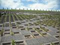 カッパといっても 私の ことではありません! 似てますが〜! はははっ! まほろばの里 高畠に 蛭沢湖(びるざわこ)と呼ばれる 主に農業用水のための ため池が あります! このため池の 改修工事が 行われていた頃 私は 前〇製〇という 会社にいまして・・・・・・ 堤体に張る コンクリートブロックの 提案などに 上司と共に 走り回って 居りました! まずは 現場を見ないと・・・・・・ということで カメラもって 蛭沢湖へ! 見つけました! カッパの碑!!! 当時は こんな立派な石碑じゃなくて 古ぼけた木製でした! 子供の頃から こういうの見ると 遊びたくなります! 「水位が下がった時に 堤体に カッパの絵が現れたら きっと 面白い!!!!」 そうした 突飛な発想は 大きい組織の中では とかく 潰されやすいものもの。 素敵な 上司でした。 そうしたことを 「に〜の君! やれやれ!!!」と いつも肯定的に 後押しして下さる人でした。 (今 私が 若い人達に 同じように接しているでしょうか? 反省です!) ということで 50センチ角の 佐々木式ブロックの中に 東洋工業の 洗い出し平板組み込んで CG作って プレゼンテーション! 役所の 担当の方も 凄い方で 「それ いいね〜!」 と たぶん 内部で強く押して頂いたのだと 想像できます。 そもそも 絵を書こうなどと 設計に計画あったわけでは ありませんから・・・・・ 無いことを 有ることに変更するには 担当の方の相当な熱意がないと 出来ないことです! じゃ〜〜〜〜ん! んっ??? 見えずらいって????? 見えずらくて いいんです! それぐらいが カッパぽくっていいんです! (くどいようですが 私じゃ ありません) これだと なんとなく 解りますかね? 最初は カッパの絵だけに したかったんですが 地元からの 要望で 上に 「び る ざ わ こ」と 文字入りました! ひと桝 50cmの くぼんでいるのが 佐々木式ブロック それと 大磯の 洗い出し平板! 当時は 東洋工業さんに 50cm角の 平板あったんですよ! ちなみに こちらが 「ゴビマット」と呼ばれる 同じく護岸ようの 製品です! 植生が 回復しています! 観光案内のつもりが いつしか 前田製管の コマーシャルに・・・・・・! すいませ〜〜〜ん! 自分を育てて 頂いた会社なので 少しだけ 恩返しできればと・・・・・(12年間 お世話になりました)