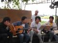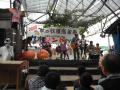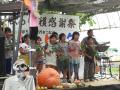 引き続き 収穫祭のレポートです! カボリンピックが 見事に盛り上がり いよいよ ライブです! 地元の子供達と 踊りを交えて 発表された 地域起こしの新曲 「かぼちゃの歌」 案山子の横から 覗いてみれば 手前で踊る 子供達も 後ろで TOMOOさんから借りたギターをかき鳴らす子供達も みんな地域の子 Am(エーマイナー)のコードしか 弾けないけれど 「それでいいよ!元気に弾こう〜」って いつもTOMOOさん笑って言います! 続いては 山形市立双葉小学校のみんなが ステージに!!! 全校生徒 9名の 小さな やまあいの小学校ですが 先日出来たばっかりの 双葉地区の歌「かた雪わたり」を 大きな声で 元気に歌ってくれました。 ステージ袖で 出番を待つ子供達! 緊張してるかな〜!って 心配しましたが・・・・ ははは〜〜〜〜!さすが今の子供達っ! 手作りの ササで出来た 風車と ササの飛行機飛ばして それこそ元気一杯のステージでした! 最後は 私のスター☆『須貝智郎』 の オンステージ! ♪かけがえのない〜 明日へと〜 歩き出してる 子供たち〜♪ ♪澄んだ 青空を〜 そのままに〜 緑の 野原を〜 いつ間でも〜♪ ♪生きてることを〜噛み締めながら〜・・・・・・・・・・・・・ っと いう歌詞が 3番に入った 『豊穣』を 皮切りに ステージ続きました! 楽しい 一日でした! そして そして スタッフみんなが お待ちかねの 反省会 兼 打上げ 兼 飲み会! ははは〜〜〜! 青年団も ひとりひとり 自己紹介! 打ち上げの楽しみは みんな 次々 歌わせて もらえること! 「次は〜〜〜っと!・・・ 山形の に〜の君たち いけるウ〜〜〜?」 「ハ〜〜〜イ! いけます いけますっ!!!」っと 相棒と ステージ上がりました〜 そして・・・・・ 一番最初の写真に! 青年団と Ba・Kuと 一穂さん! いい雰囲気でしたよ! 今回も たくさん 飲んだ 打ち上げでした! はははっ!!! 相棒と 私の写真は 今のところ ありません! カメラ撮影しながら 歌えません! はははっ!” KENさんから 画像送られてきたら 「えっ!!!! 今頃〜〜〜???」 ってぐらい 調子抜けするぐらいのタイミングで・・・・・・・・ はははっ! ブログネタに困った時にUPです! はははっ!