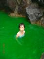 子供は色鮮やかな紫色のお風呂に大はしゃぎですが・・・