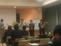 先週の寒さはどこかに吹き飛び 今日はとってもお天気良かったですよ 明日は崩れるそうですが 天気もいいので今日も企業様の芝刈。 昨日の日曜も天気が良かったのでソフトボールの 試合してきました 結果は1回戦敗退 その後母の日のいうこともありお花をプレゼント (実家の母に) (奥様の母に) 月並みだけどとっても喜んでいただけましたよ 話は土曜に戻り坂井市商工会青年部総会の画像から (卒業生に花束贈呈。なんと4人のうち2人が造園屋さん) その後場所を移し懇親会にて ん 何やらまぶしいと思ったら (ここにも団子3兄弟が) 怪しげな二人 (副委員長の剛君と竹内塾長) ここにも坊主が (副部長・協力店の左官屋松永君) またまた場所を移し2次会にて こんな画像でも余裕のピースサイン (お花屋の瀬戸さん) そしてやっぱり落書きが始まります。 (まさきちゃんと瀬戸さん) 楽しい週末と日曜を過ごせましたよ