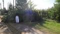気持ちのいい青空の一日でしたね。 こうも涼しい日を思うとあの暑さは なんだったのでしょうってな感じです。 今更ながらですが日本には四季が あるんですねぇ 今日はお世話になってる土建屋さんからの 下請けのお仕事に行きましたよ。 我が母校の坂井中学校。 ただ今校舎の耐震工事中。 その工事のほうではなくてグランドのほう。 グランド改修工事に伴う樹木の伐採作業。 こちらのマツやイチョウを伐採・抜根する予定ですが 私がまだ学校に通っていたころからあった樹木。 このグランドで授業や部活動に励み 暑い日なんかは木陰で一息 しかもまだこの町にも予算がいっぱ〜いあった頃は 毎年剪定作業していた思い出のある樹木。 そんな思いのある樹木を伐採なんてできるわけが・・・ 出来るわけ・・・ 出来ました こんなにあった思い出の木が・・・ はぁい、こんな感じ しまいにはクレーン使用の重機で 吊し上げます でも仕事とはいえホント胸が痛むんですよ。 しかも昨日のブログで少しでも緑が増えればと 書いた次の日だし・・・ しかし植えたり切ったりも造園やさんのお仕事ですもんね。 その分どこかで植栽して補わなきゃね