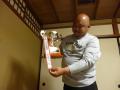 4日ぶりの更新ですかね。 今週もよろしくお願いします。 今週もも引き続き土間コン なんかの現場が多いですが今日の 私の現場はこちらです。 生垣のやり変えに現場。 大きくなってむさくるしいのでスッキリと したいという施主様。 撤去し新しく植替えます。 スッキリしましたかねぇ。 やはり仕事の話は長続きせずお決まりの 週末の出来事にさっそく話題を変えますね 金曜から土曜にかけ毎年恒例の 友人らと作る会のゴルフコンペに出かけました。 総勢10名・・・。 コンペといえるのかどうかわからない人数ですが 毎年大体これ位の集まり。 今年の行先は京都。 いつもはマイクロバスをチャーターしての 遠征ですが今年は人数が少し少ないので 知り合いの車屋さんが所持するハイエースで出掛けました。 滋賀県の名門ゴルフ場でのコンペです。 プロのトーナメントコースでも有名ですよ。 もちろんそのコースはお高いので下のランクのコースですがね。 私にとってはどんなコースでも難しいので あまりよく分かりませんでしたが皆さん曰く 難しかったみたい。 私のメインはその後の懇親会ですからね 京都の町はやっぱりいつ来てもすばらしい どうでもよいのですがとりあえず優勝者。 2連覇達成 準優勝。 こんな頭悪そうな人に負けるとは・・・ しかも頭にはこんな落書き・・・ この後この頭で京都の町を朝までいれるとは・・・ 次の日は寝不足のままお寺巡り。 建仁寺の国宝。 風神雷神。 そして双龍。 これ何十畳もある天井に描かれてます この他もいろいろと廻りましたが最後は 定番の清水寺。 ここで集合写真(私が撮影したので居ませんよ。) 年に一度の県外遠征。 楽しかったなぁ 次は県内での秋のコンペですね。