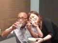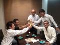 いやぁ〜今日も暑かったですねぇ 台風はそれたみたいですが その影響もあってか朝から気温も グングン上がり吐き気がするほどの 暑さで頭がガンガンしてました 頭は朝起きた時から痛かったのですがね 昨日の日本酒が効いたな・・・。 昨晩は庭ブロ友の一乗っ子さんの 全国表彰のプチお祝いに出かけて 遅くなりましたからね。 造園連から表彰されたみたいです。 詳しくは一乗っ子さんのブログでたぶん 書いてくれてるとは思うんですがね。 お祝い会場はこの前施工させて頂いた 片町にある『き鶏屋』さんへ。 夜はこんな感じでした。 ライトアップも考え中だとか お店からのお祝いでシャンパン お店のママも祝福です。 集まった仲間と乾杯 何故か大先輩の先生まで・・・。 いっぱい飲んで騒いで楽しかったのかな。 二次会では珍しくおねむでしたね またみんなで飲みましょう